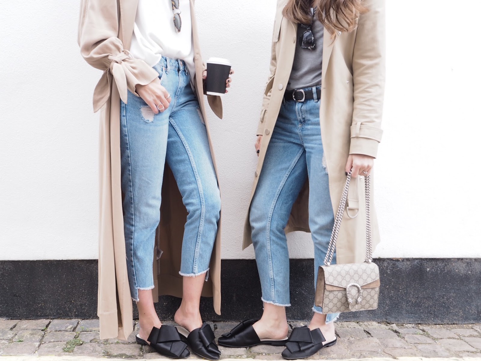 H&M mules (now sold out!) similar here | River Island jeans | (left) H&M mac (similar here) | (right) Whistles mac | Gucci bag