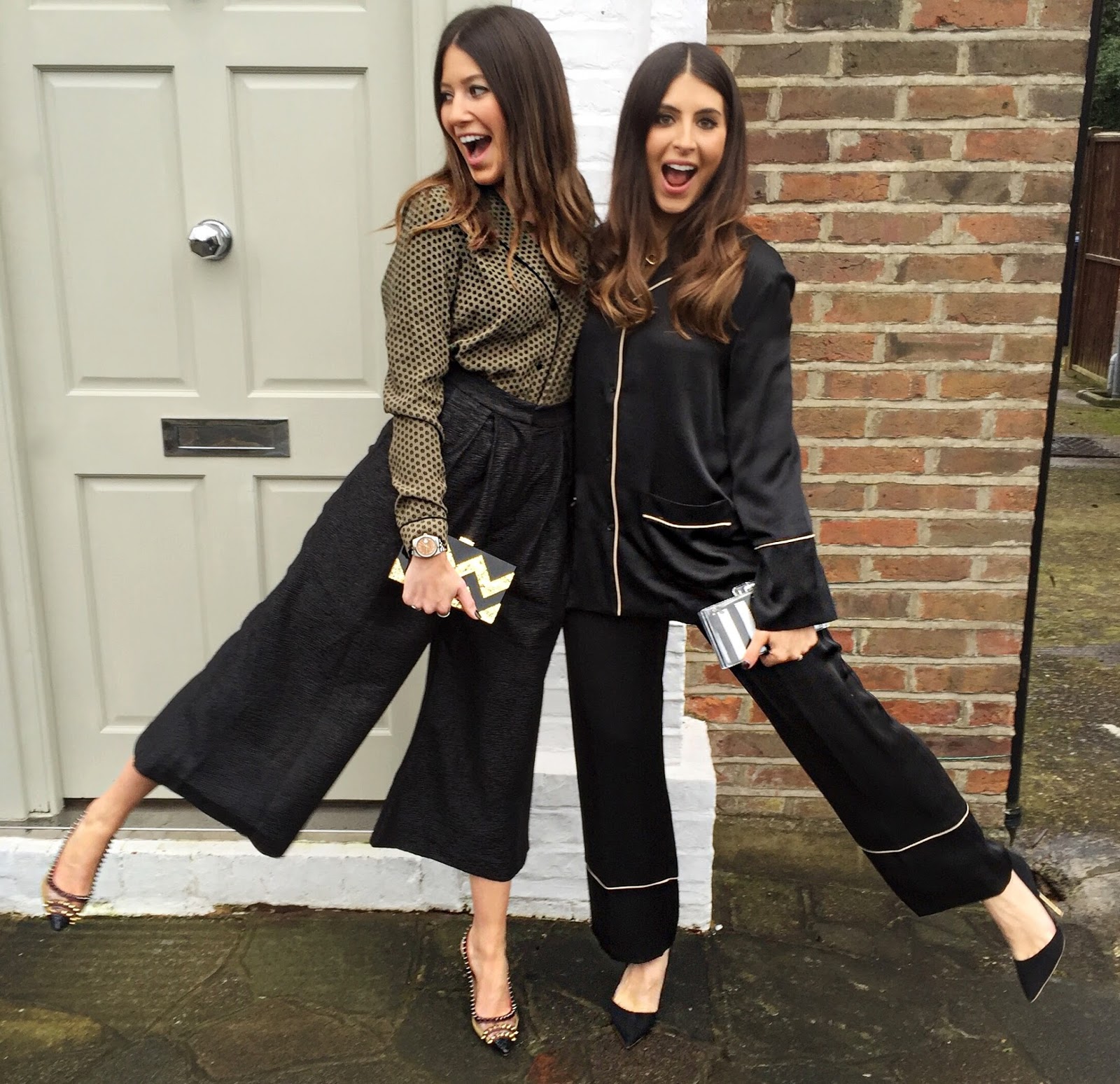 Yup, that’s right PJs are on trend, not just in the bedroom…for going out as well! And let us tell you they’re one of the comfiest and believe it or not, one of the easiest trends to wear for the season ahead. What could be sleeker then slipping into a slinky two piece for date night?! We get that it’s quite out there, but thankfully there’s plenty of PJ style tops that don’t require matching bottoms to get the look. Cue Philippa’s cute khaki number from M&S, for the night it looks great tucked into culottes but would be really cute styled up with frayed jeans and some slides for spring. Sarah’s gone the whole hog with a two piece set from & Other Stories but both items could be dressed down and worn as separates as well.