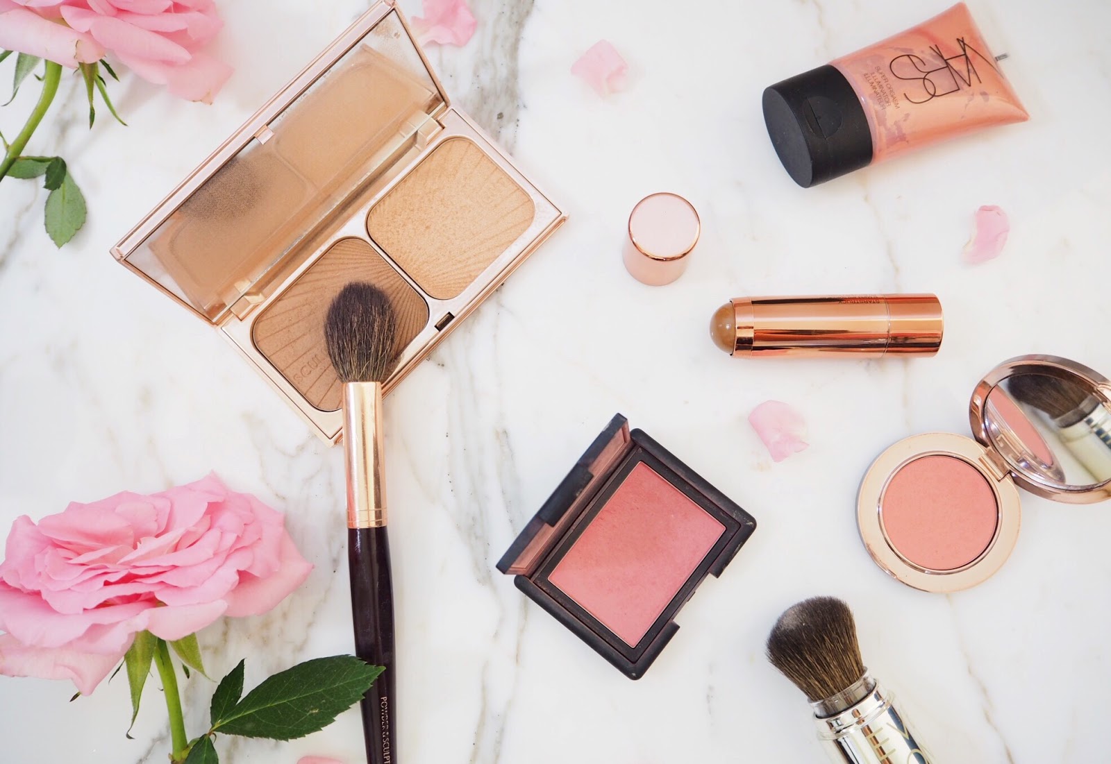 We’re quite new to contouring and it’s not something we do on a daily basis (sometimes when we shoot our blog pics it’s nice to have a little extra cheekbone action!) but we absolutely love Charlotte Tilbury filmstar bronze & glow palette along with the powder & sculpt brush. (Top tip – if you’re going to invest in the palette the brush is worth buying too as it is the best for application – plus we religiously watch her YouTube tutorials on how to apply!) We’ve yet to find a duo that even competes with this, it’s definitely a bit of a splurge but it actually lasts a long time as well. Even when we don’t want to go the whole hog with contouring, we often just swish a layer of the shimmer over our blush for that extra glow. Having both come back from recent trips and with a bit of a tan we’re also loving Nars’ illumination in Orgasm it’s great on the cheekbones as a highlighter as well as on tips of shoulders & collar bones on holiday.